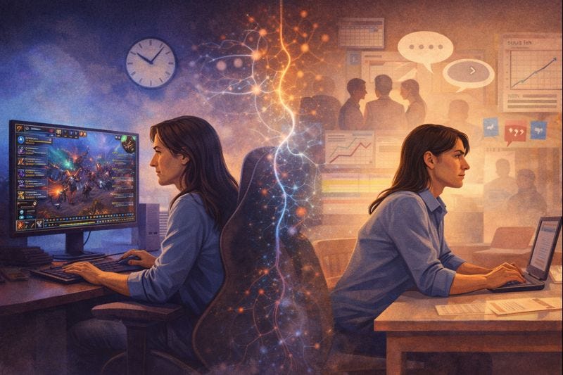 Your attraction to games might not just be a hobby, it might be a diagnostic signal. It is information about the kind of feedback and meaning your current work environment is not delivering. And if you are in transition, if your identity feels wobbly, if you feel like you are rewiring in public, that signal matters. It tells you what your nervous system needs in order to keep learning.
